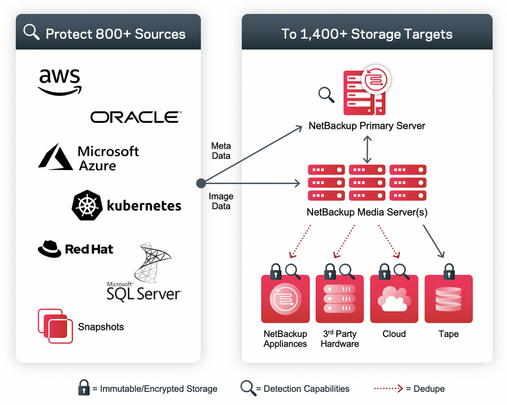 Especificamente, a extensão da plataforma de otimização de infraestrutura da Veritas (APTARE™ IT Analytics), correlaciona e analisa sem agente o norte de 50.000 pontos de interesse únicos. Originalmente desenvolvido para otimizar a infraestrutura e as operações, os recursos da APTARE se expandiram para oferecer detecção de anomalias. Ter essa visão panóptica de TI de vários fornecedores (armazenamento, computação, backup, etc.) em todo o seu ambiente, local ou na nuvem, é importante para validar que todos os dados corporativos estão protegidos adequadamente. Além disso, a extensão da plataforma Data Insight da Veritas permite que se realmente descompacte dados em nível de arquivo (não estruturados) para ajudar a definir a propriedade, classificar, localizar PII, automatizar a conformidade, etc. Novamente, a detecção de anomalias de ransomware também está incluída nesta análise.